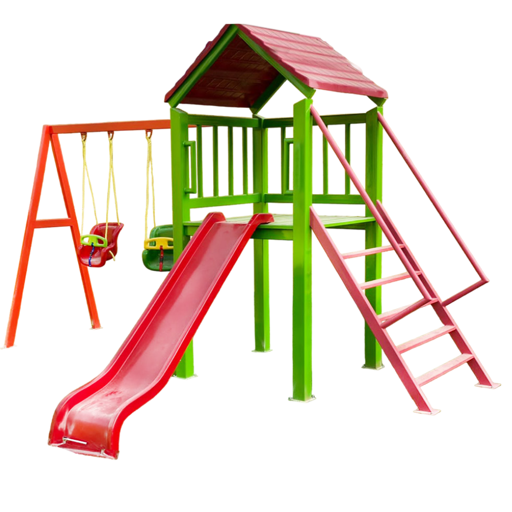 Plataforma altura 1,50 metro Tobogan 1,50 metros altura x 2 metros largo Módulo 2 columpios cesta y clasico (incluye columpios)